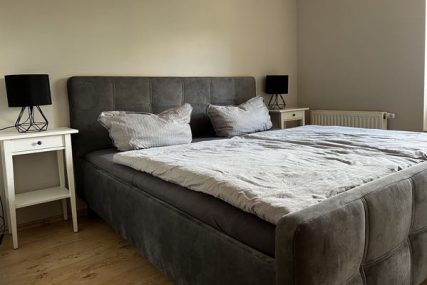 Schlafzimmer mit Doppelbett und Kleiderschrank