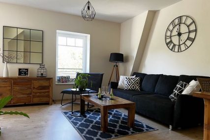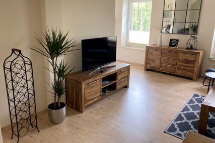 Wohnzimmer mit Sat Tv und Netflix sowie einer Marshall Bluetooth Box zum Musik hören