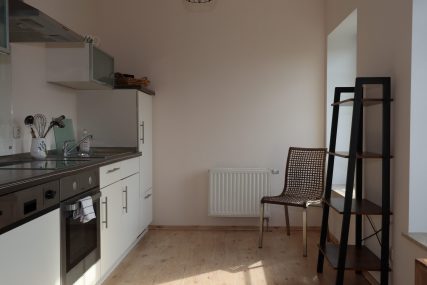 voll ausgestattete Küche: Herd mit Ceranfeld, Külschrank mit Gefrierfach, Geschirrspüler, Wasserkocher und Kaffeemaschine